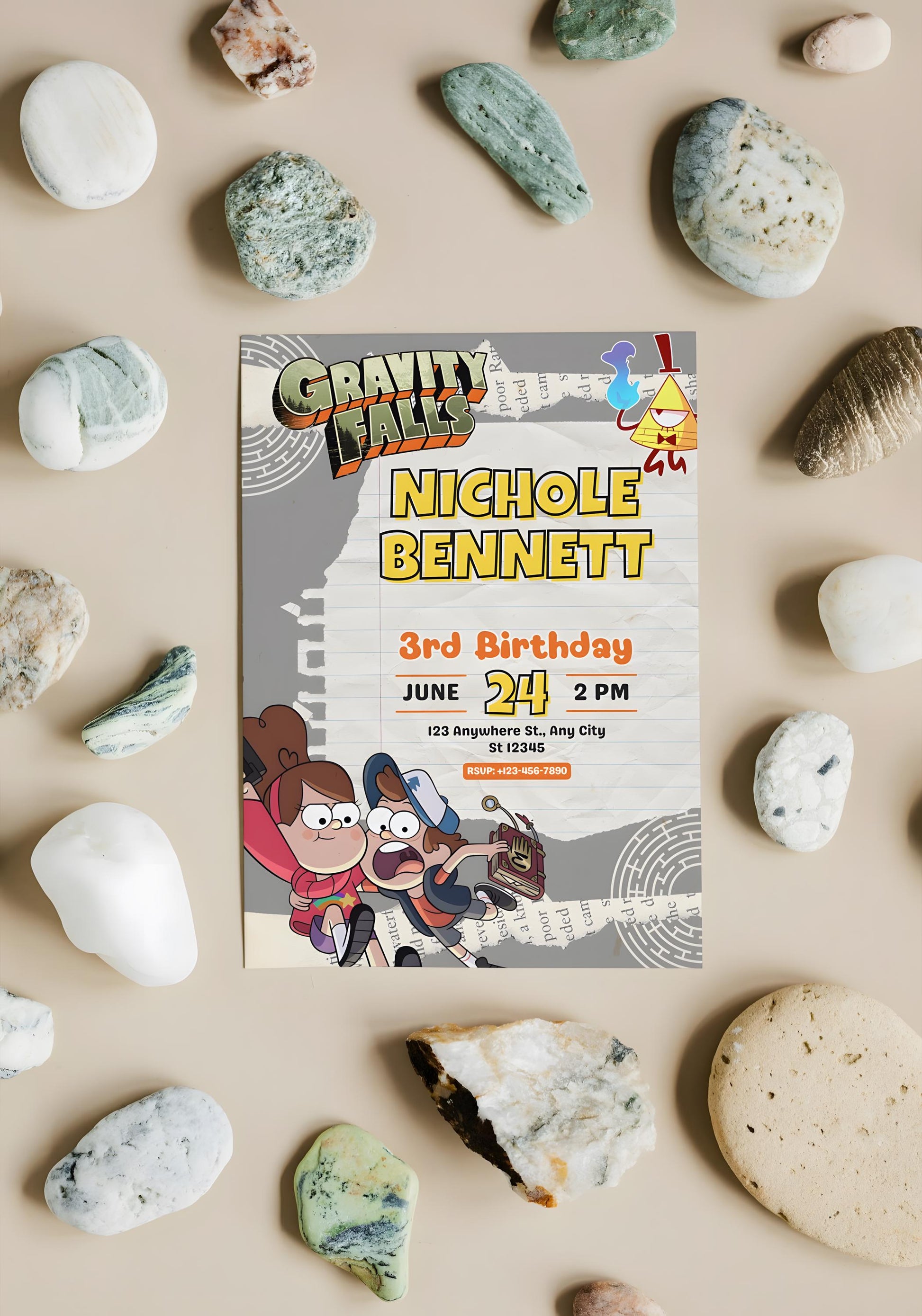 Invite your friends and family to a birthday adventure with our unique Gravity Falls birthday invitation cards! Available in our Etsy shop, these invitations capture the whimsical and adventurous spirit of Gravity Falls, making your child's birthday party unforgettable.
